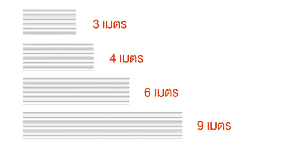 - ความยาวของแผ่น 3 เมตร, 4 เมตร, 6 เมตร, 9 เมตร