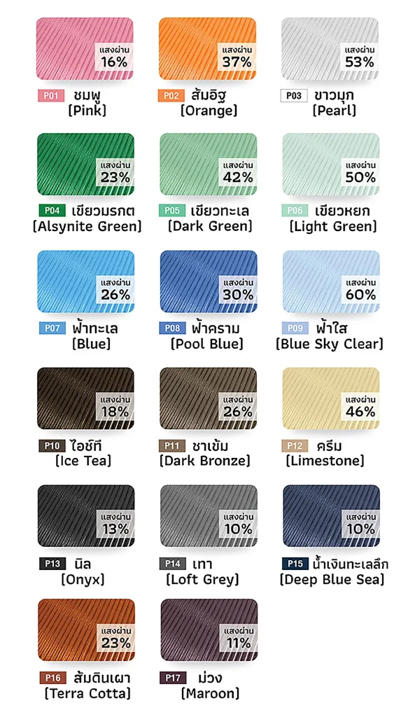 รายการสี 17 สี แผ่นไฟเบอร์กลาส โปร่งแสง มินิโกลด์