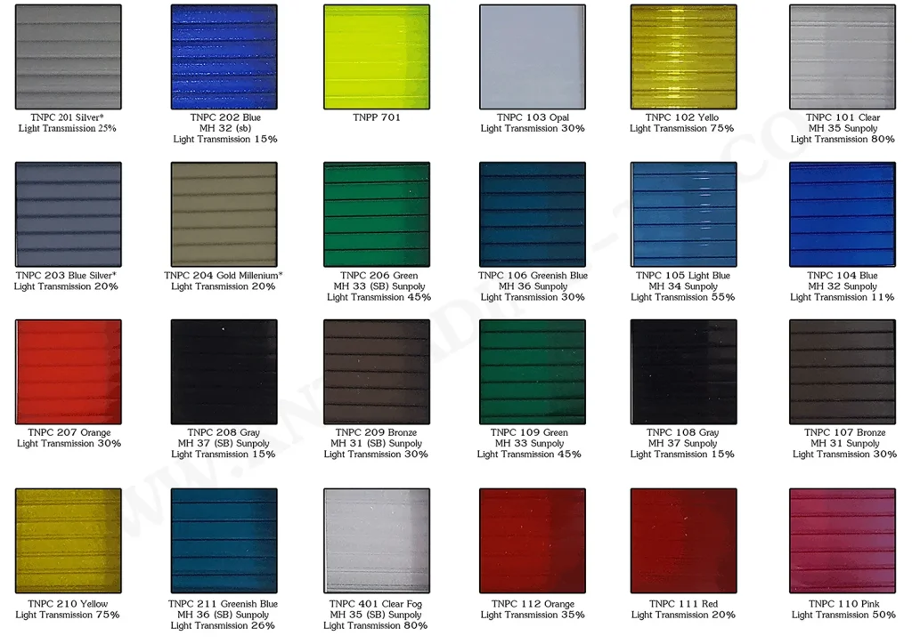 รายการขนาดและสีแผ่นโพลีคาร์บอเนต แผ่นลูกฟูก